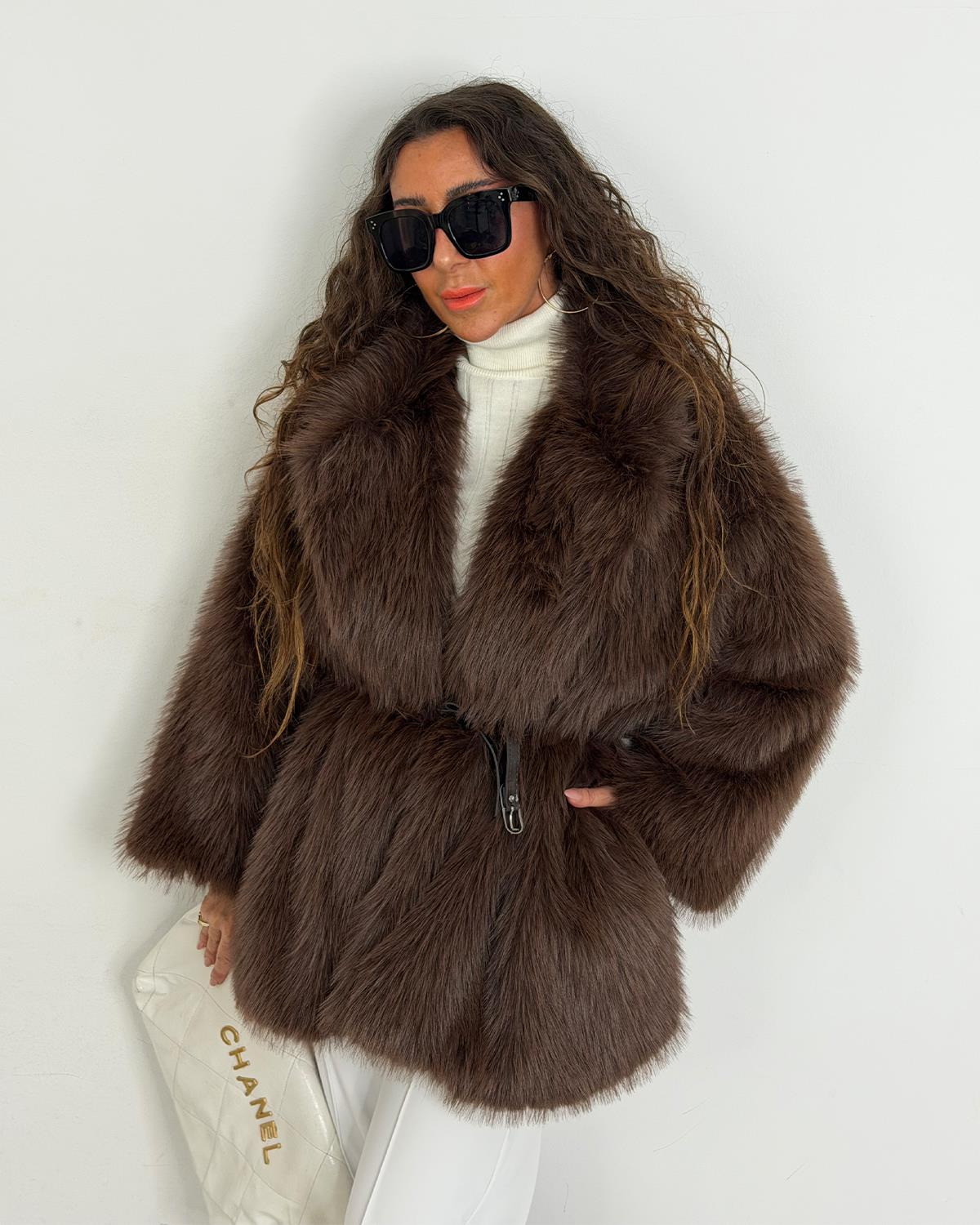 Baskılı nakışlı çift renkli hassas dokulu tüm ürünlerin kuru temizleme yapılması önerilir. Peluş Kürk kumaş, polyester kumaş. Ceplidir içi astarlıdır. Kemer ürüne dahildir. Düğme, fermuar ve agraf yoktur.