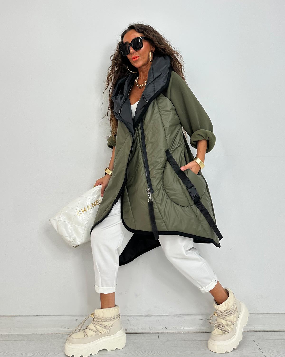 Üç iplik içi şardonlu kumaş, elyaflı mont kumaştır. Kuru temizleme yapılması gerekir. Kapşonludur. Geniş Kalıptır.