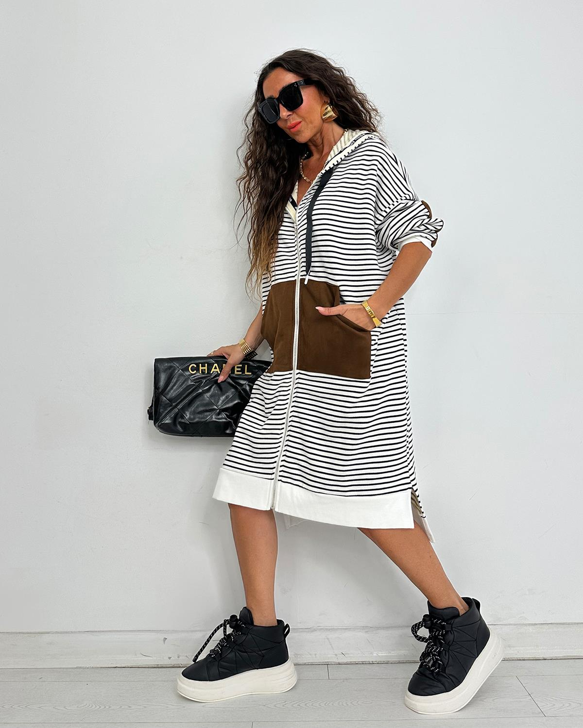 Wow Çizgili Ceket Elbise Siyah